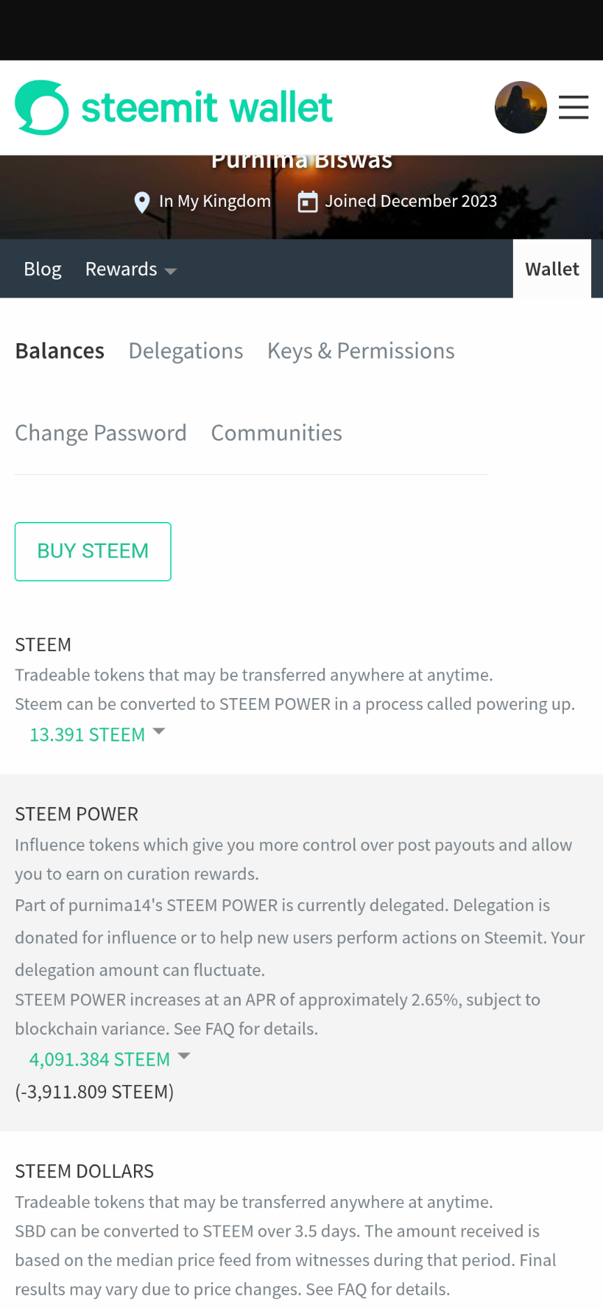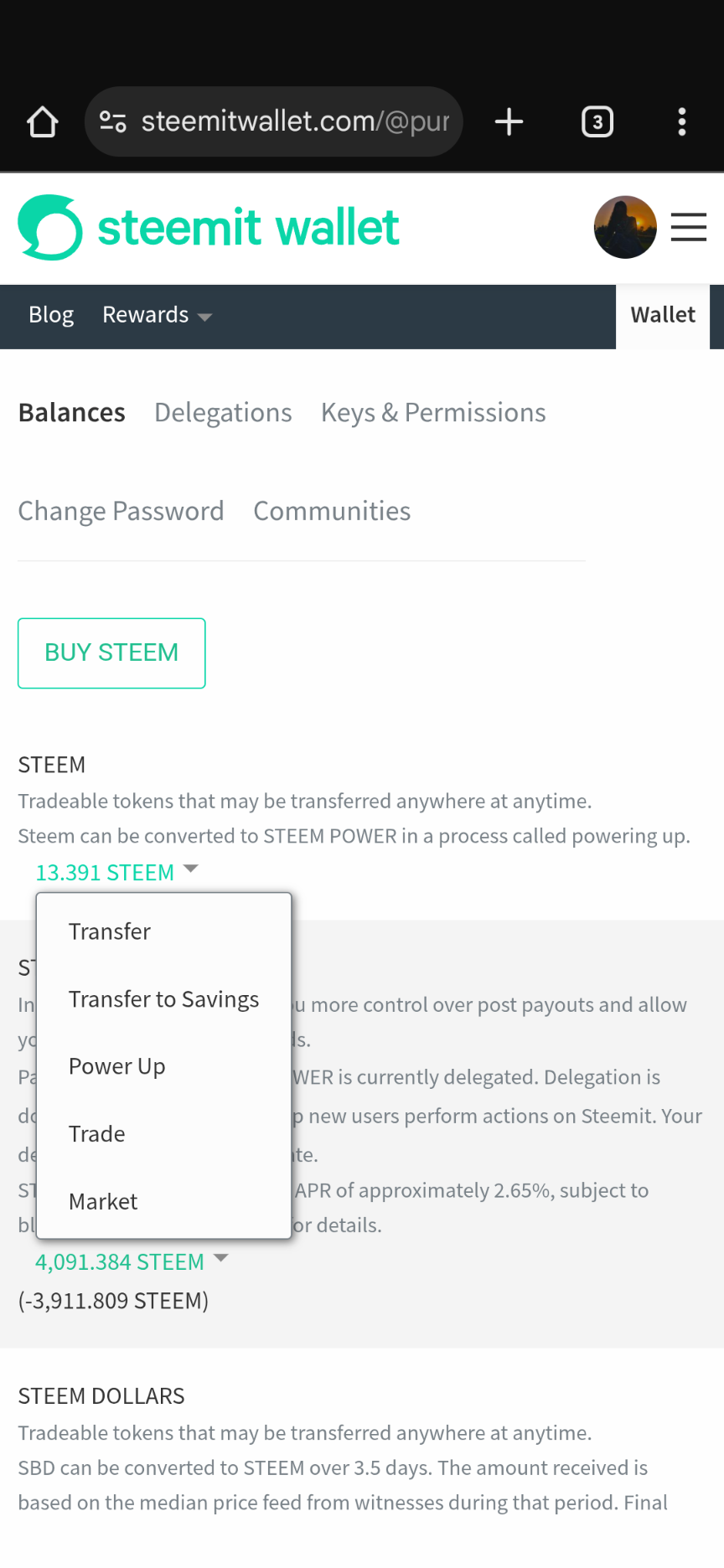 পাওয়ার আপ সম্পন্ন করার পরে আমার স্টিমিট ওয়ালেটের স্ক্রিনশট।