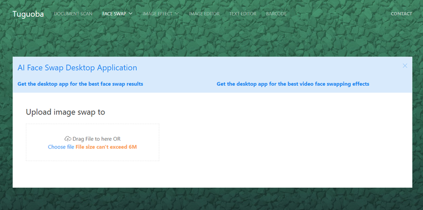 Tuguoba isn’t your average video editor. Instead of layering filters, it uses AI to detect faces and replace them seamlessly with another. You can work online for quick swaps or download the desktop app for higher-quality results.