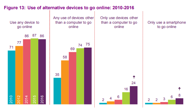 Smartphones are becoming an essential tool for navigating daily life… The results of both the qualitative and quantitative research show that the mobile phone is the device that the majority of people would miss the most (41%). The qualitative research also indicates a growing reliance on smartphones, as mobile internet becomes more accessible and the smartphone is able to fulfil the role of various other devices.