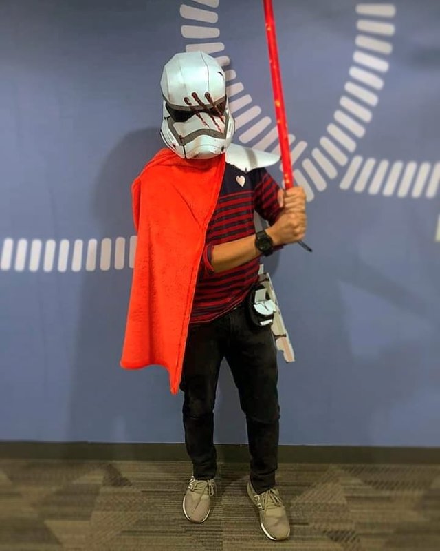 All costume parts were recycled or upcycled. Did not buy any other materials to make this helmet and getup. Would've made the whole armor if I wasn't lazy and if the prize for the best costume was a bit bigger haha.