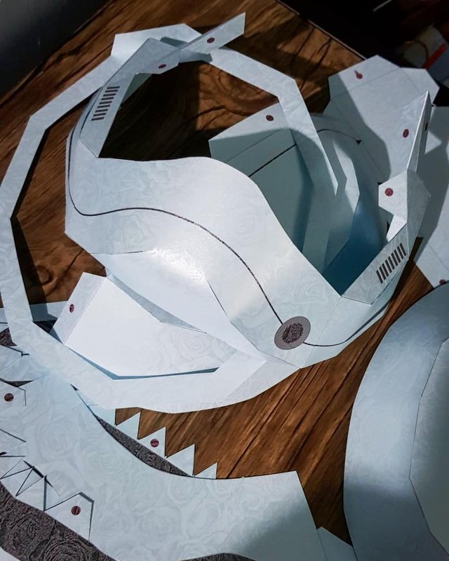 Lol I forgot to put holes for the eyes at first, but I have fixed that (see later photos). The paper has floral prints on it though. The gradient on the black part was simply the printer deciding to fuck up and lose ink (or was it me who fucked up for not checking?).