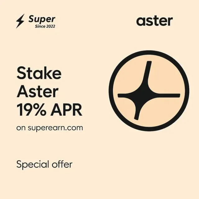 Staking ASTER involves locking your tokens for a certain period of time in the Aster or partner ecosystem (such as Super) to help maintain network stability and liquidity. In return, participants receive regular rewards — currently up to 19% APR.
