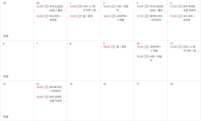 - 상영일시 : 2025년 09월 30일 (화) ~ 10월 14일 (화)