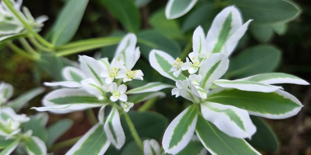 북아메리카 온대 지방 원산의 한회녹색의로서 회녹색의 잎 가장테두뿐만 아니라 꽃도 하얘서 이름 지어졌으며 영어로 snow-on-the-mountain이라고도 불린다네요. 꽃말은 환영과 축복^^