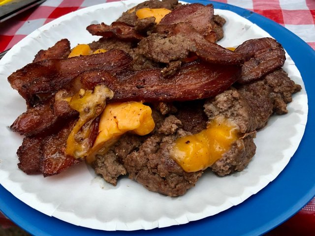When it was all said and done, I had four bacon cheeseburgers, but it was really more like a plate of ground beef with some cheese and bacon on it.