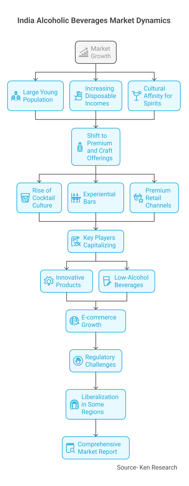 - E-commerce Growth: Online platforms are expanding access to alcoholic beverages, especially in tier-1 and tier-2 cities.