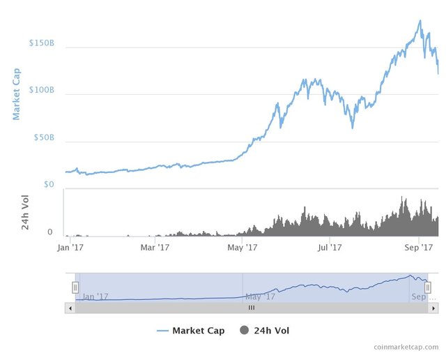 The sell-off that has been boosted by the recent comments of Jamie Dimon, and the previously leaked Chinese ban on ICOs was already baked in the cake after the stellar rise 200% rise in the sector from mid-July to September. The surprisingly quick double crackdown might have accelerated the move, but a deep correction was needed to reset the overly bullish sentiment towards the sector.