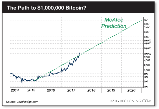 We admit... We haven’t the dimmest notion where bitcoin will trade in three years’ time.