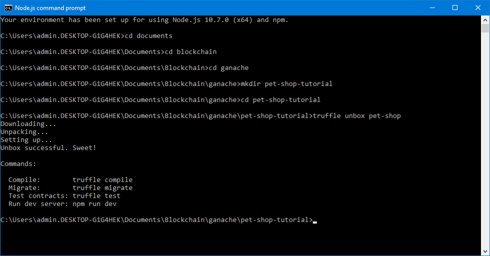 Now you have created a Truffle Box called pet-shop, which includes the basic project structure as well as code for the user interface.