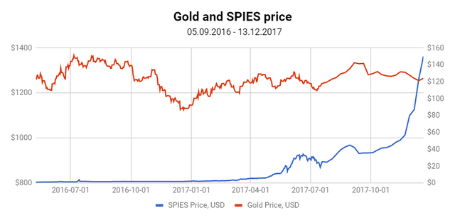Satoshi•Pie token (SPIES), the token of the first investment fund traded on a blockchain, grew by 21.8% in the week from 13 December, 2017 to 20 December, 2017 reaching $150.25.