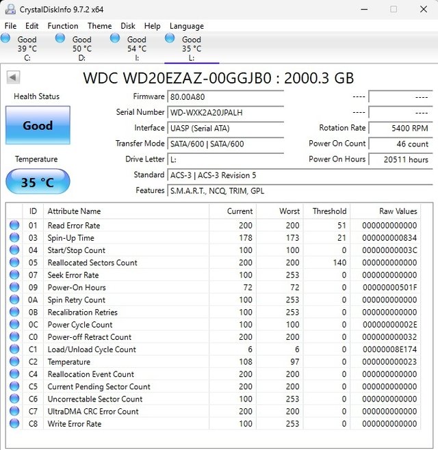 The CrystalDiskInfo shows that the Drive is still healthy.