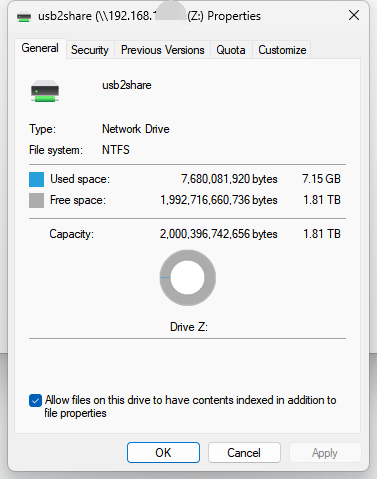 [usb2share] path = /mnt/usb browseable = yes writable = yes guest ok = no create mask = 0777 directory mask = 0777 valid users = pi