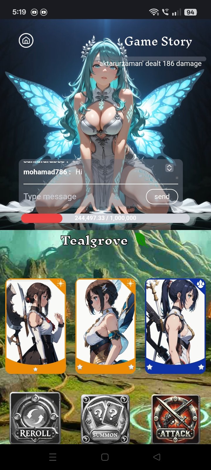 Players can increase their power using the Reroll, Summon and Attack options here. Special cards and characters play an important role in the game. Each character has different strengths characteristics, which can be used to attack right time, allowing players to progress quickly. For example, the current rank a player is #156 .