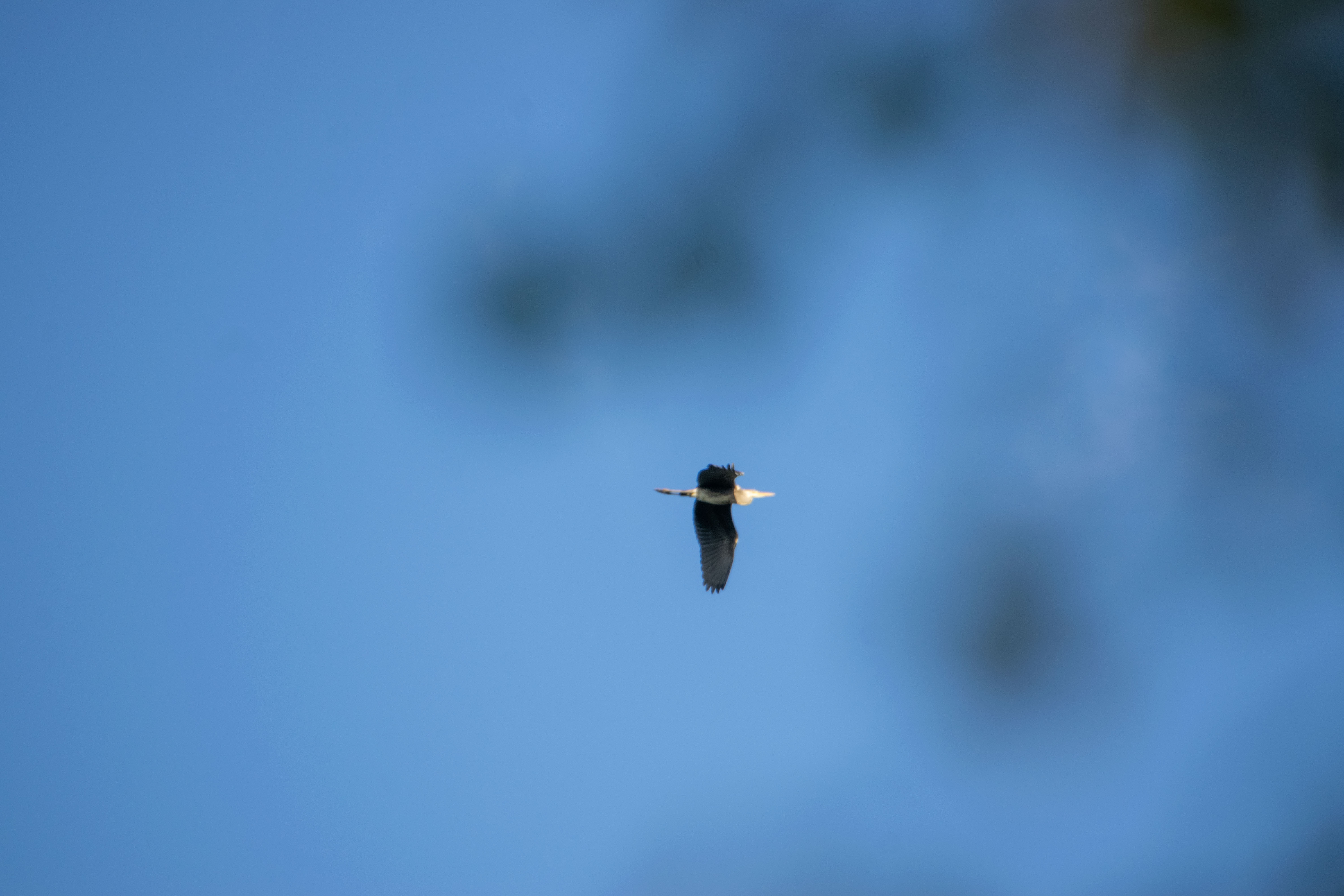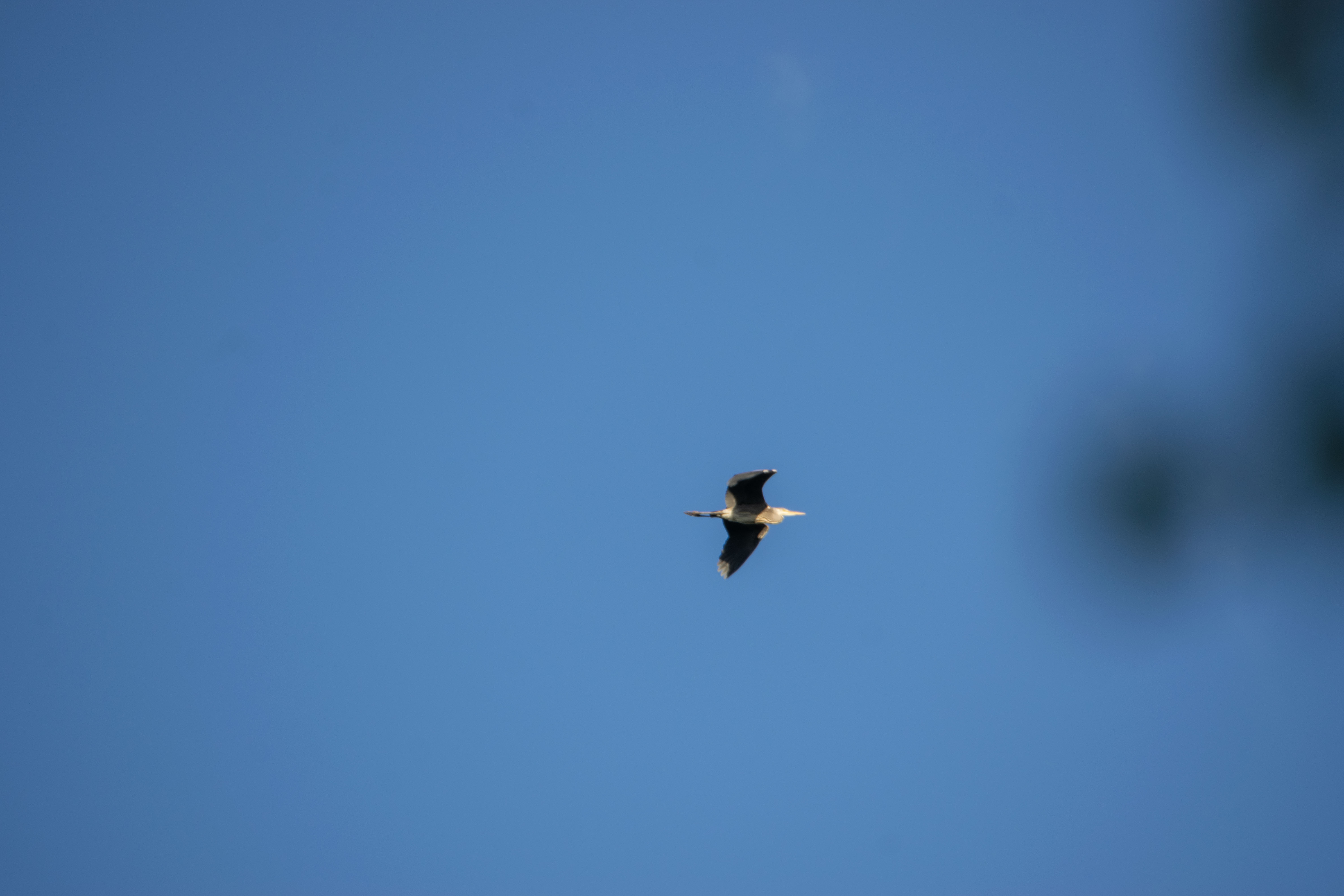 I met 5 stork nests in the vicinity of this location, but they were all empty because the storks had flown to warmer climes; but on one of my walks around the lake, I met a gray heron. It was an unexpected meeting, and it was starting to rain. The next day, I heard sounds coming from above. I realized that herons were making them, and a minute later I saw 3 large birds high in the sky. They were circling over the lake. I managed to grab my camera, take 2 shots in the direction of the heron, which disappeared from sight a moment later.