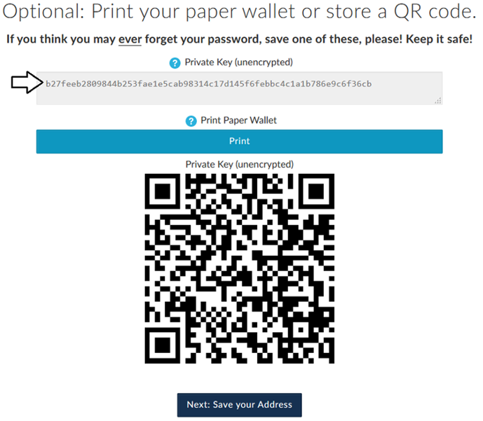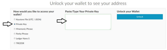 Click on “Save your address” button in order to unlock your wallet. Select the second option from the list “Private Key”.