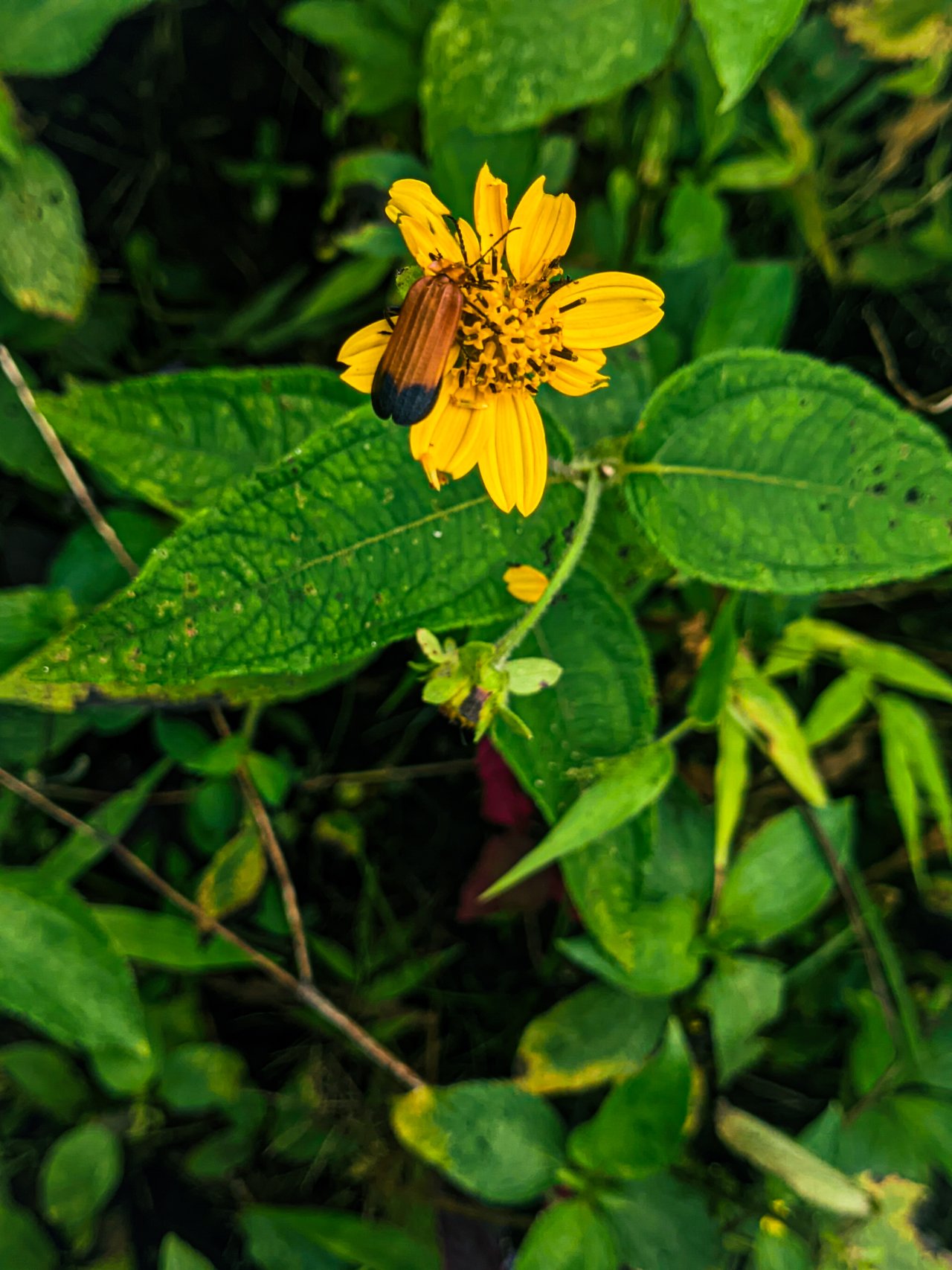 Hello, I am here for another post, which is about this beautiful insect which I took the picture in my garden and it is called the click beetle. This insects have a narrow and flat body, they are brownish in colour and has a tip blackish colour In it's butt. They are harmless to humans. According to this photo it is sticked on a sunflower. They lay their eggs on the soil and also develop on the soil.