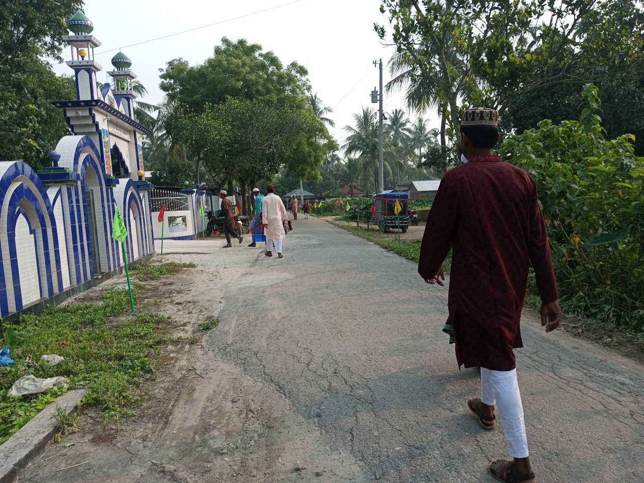 There is only one Eidgah Maidan in our village. Where 2,000 devout Muslims offer prayers together. I liked it very much when I arrived at the Eidgah Maidan, I saw that the people of the eastern part of the village had started coming again. It is very nice to see people moving towards the Eidgah Maidan in groups. There is a different inspiration for me to do this photography out of love. I tried very happily to capture this wonderful moment in the photo. I saw that every Muslim had dressed himself up very beautifully and came to the exam maidan. They came to offer prayers wearing new Punjabi, new pictures and pajamas. Along with them, many small children came to the Eidgah Maidan to watch everyone offer prayers. Right then I remembered this beautiful day. When I was a child, we also used to attend the Eidgah Maidan holding hands with our father. We liked offering prayers with them a lot. Maybe it has been a long time since we missed it. I cannot offer prayers with my father at the Eidgah Maidan because he is sick. However, these days remind us of the past when we would once again hold hands and attend the Eidgah grounds.