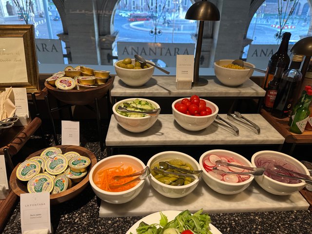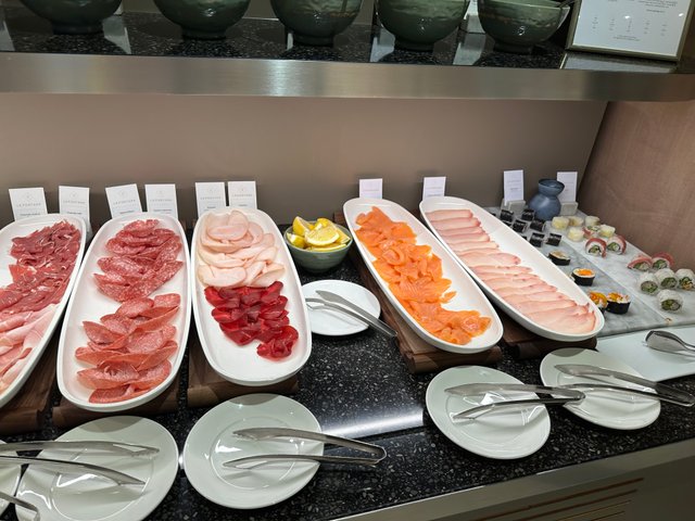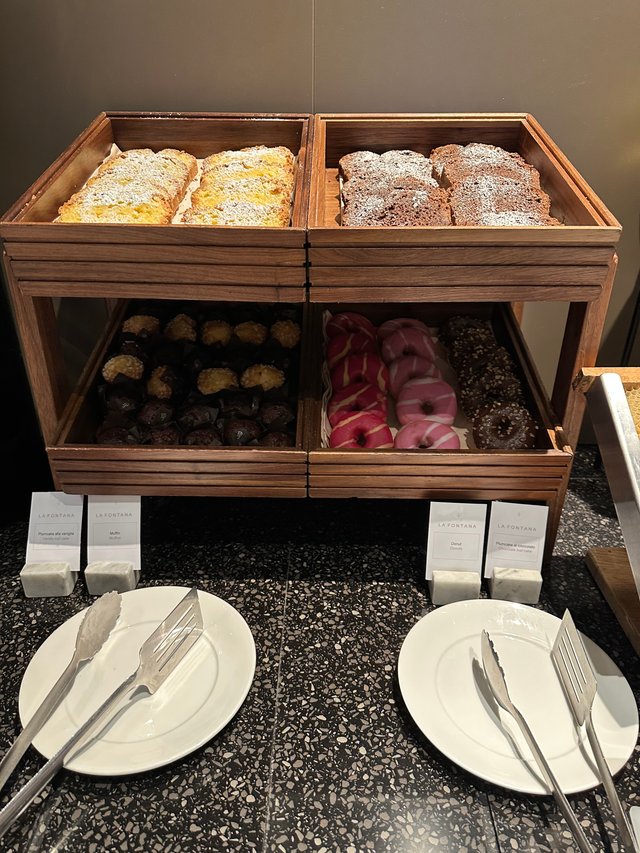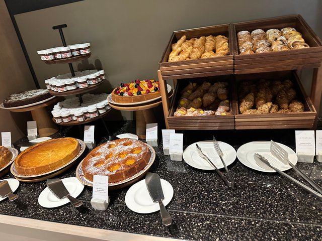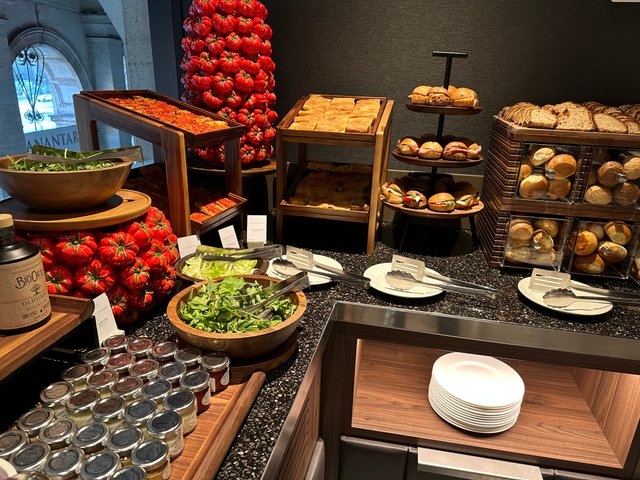 早餐早上7点开始到中午11 点结束。我们进去的时候,里面人不多。早餐可以选择单点,也可以自助。某生去看了一下自助的选择,发现很丰富。于是,我们都直接选了自助,可以吃不同的食物。