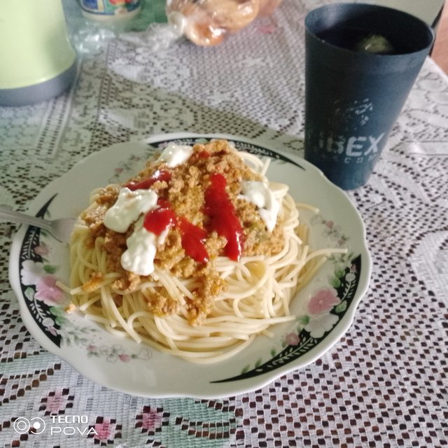Después de desayunar me dedique a la plataforma ya que estaba de guardia cómo moderadora, adelanté todo lo que puede mientras se me hacía la hora de bañar a Sofía para darle su almuerzo y acostarla hacer su siesta, después de dormila me viene a preparar mi almuerzo el cuál me hice una pasta con carne molida, acompañándola con un pancito francés y un vaso de refresco en esta ocasión.