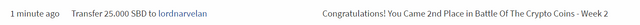 Thank you to all the warriors for taking part. If you want to be part of Week 3's Crypto Battle then I will be making an announcement tomorrow. I'd really appreciate it of you'd upvote and resteem this post to help me to pay for these prize funds.