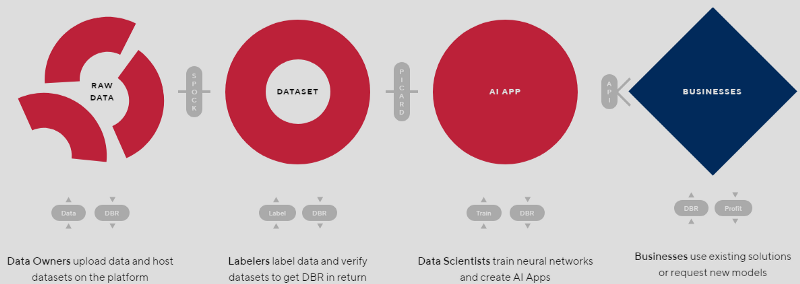 Проект Dbrain имеет своей целью соединение всех сторон и легкую интеграцию всех этапов разработки и включает внедрение AI APP в продукт, демократизирующий ИИ. Протоколы blockchain и внутренней криптовалюты обеспечивают прозрачность и справедливое распределение доходов. Проверка качества маркировки, осуществляется протоколом SPOCK. Обеспечение частной и конфиденциальной информации и будущих доходов для владельцев данных осуществляет PICARD.
