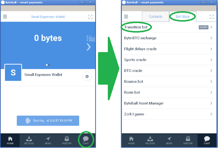 Wie man BitCoin- und ByteBall-Account vernüpft: