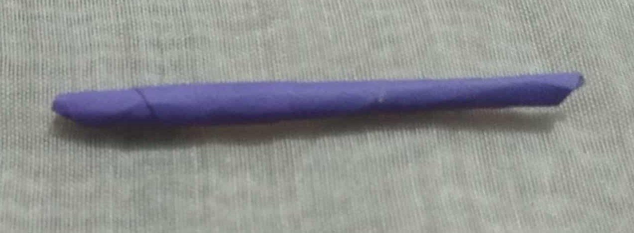এবার এক টুকরো বেগুনী রং এর কাগজ প্যাচিয়ে নিয়েছি। প্রদীপ এর শলতে বানানোর জন্য।