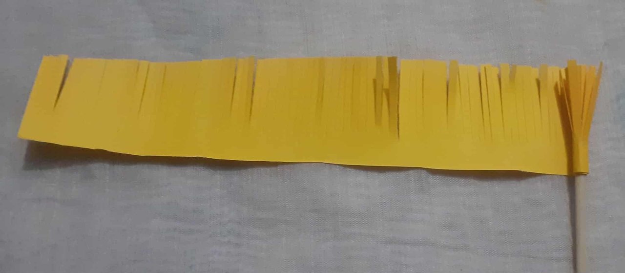 কেটে নেয়া হলুদ রং এর কাগজের এক পাশ চিকন চিকন করে কেটে নিয়েছি।