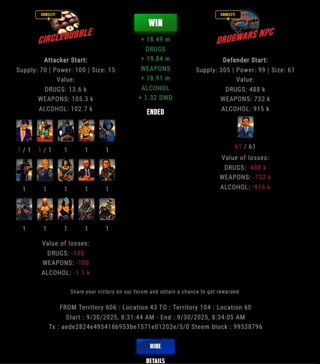 Check my latest fight ! circlebubble vs The Govermentcirclebubble (75)in DrugWars • 5 days ago #drugwars-fight #gaming #fight #dw