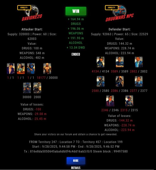 Check my latest fight ! davidke20 vs The Govermentdavidke20 (74)in DrugWars • 10 days ago #drugwars-fight #gaming #fight #dw