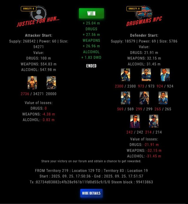 Check my latest fight ! justice for hungary vs The Govermentmonk2 (52)in DrugWars • 7 days ago #drugwars-fight #gaming #fight #dw