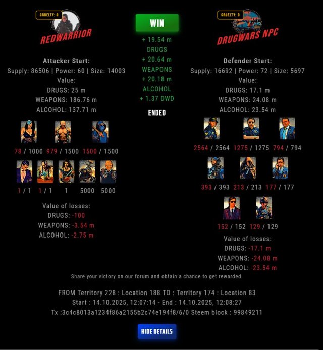 Check my latest fight ! redwarrior vs The Govermentredwarrior (61)in DrugWars • 19 hours ago #drugwars-fight #gaming #fight #dw