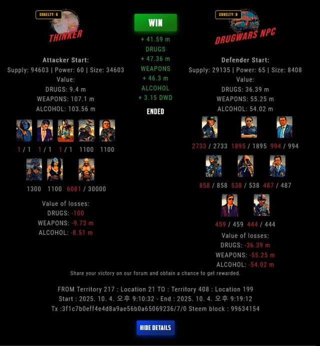 Check my latest fight ! thinker vs The Govermenttinker-bell (67)in DrugWars • 2 days ago #drugwars-fight #gaming #fight #dw