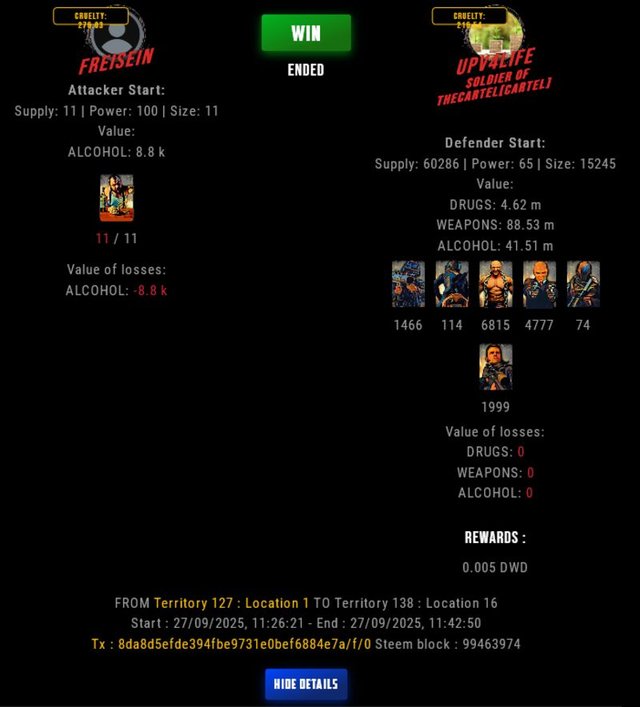 Check my latest fight ! freisein vs upv4lifeupv4life (65)in DrugWars • 7 days ago #drugwars-fight #gaming #fight #dw