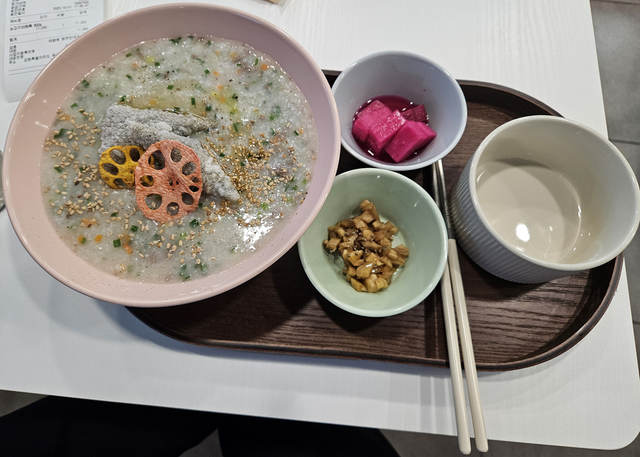 전날은 견과류 한봉으로 때웠고, 종일 청귤 2개로 때우고 있다가 저녁에 죽을 먹었습니다.