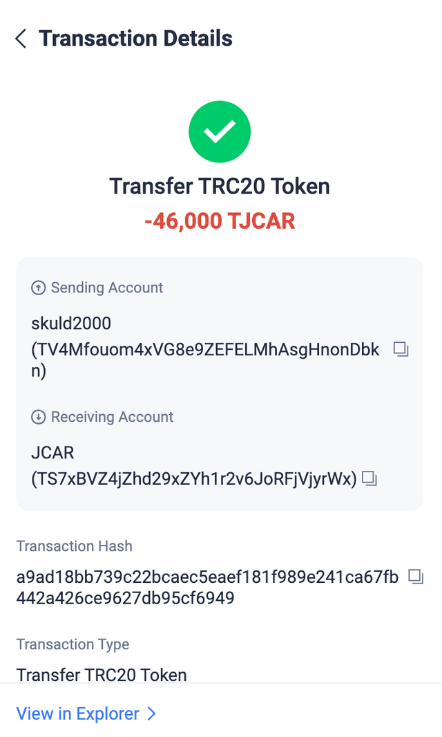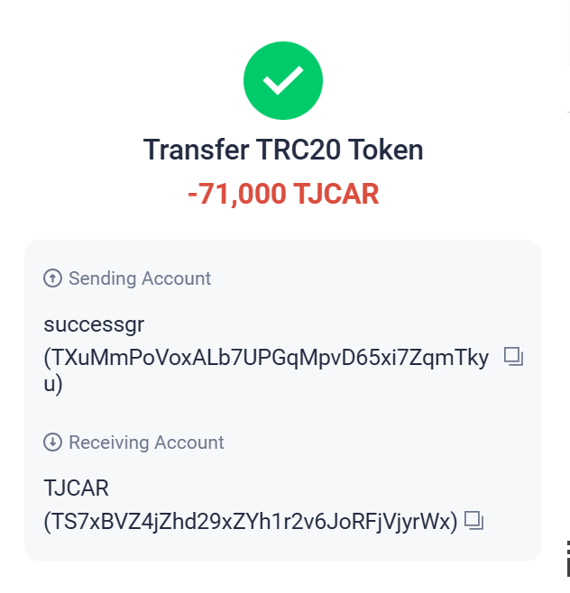 TJCAR 컨트랙트 주소 : TNHRQryXDyYSyqFHq8UqCYFSc6dzp81Dxa