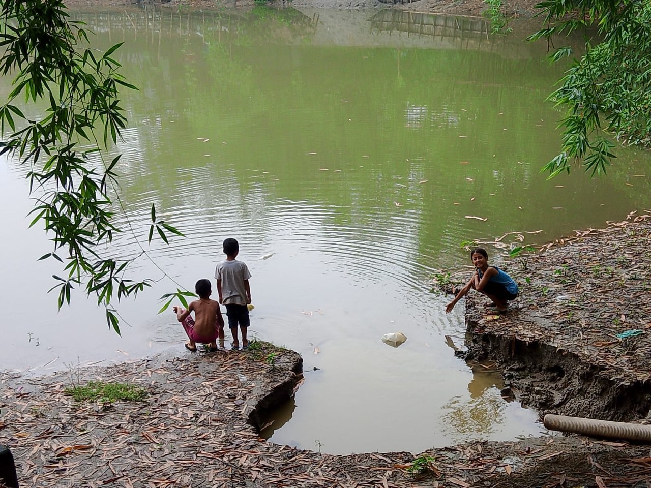 After some time I went to bath. Mom called me to take a bath and have lunch. So we all went and had lunch together. Then I came home and slept. Then I slept a little. I woke up and went for a walk outside. I walked outside for a while. Then I took a picture. After that, I went for a walk with my younger siblings by the pond. They went down to the pond. Everyone was having a lot of fun. So I took a picture of them again. After that, I walked outside again and came home. I came home and sat outside with everyone and talked.