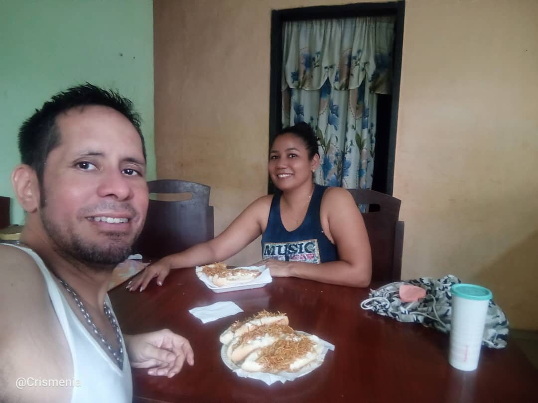 Llegué a casa y ya mi esposo había recogido parte de la ropa que ya estaba seca, me dispuse a ordenar las compras y le dije a mi esposo que había comprado unas salchichas tipo polacas para preparar un arroz chino, pero al día siguiente y como eran muchas salchichas él se antojó de hacer unos perros calientes, así que fue a comprar los panes y se encargó de cocinar. La verdad es que le quedaron deliciosos.