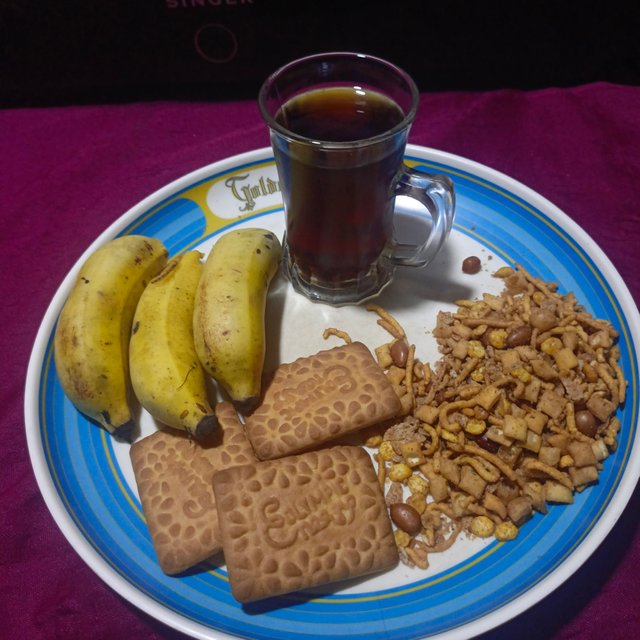 After that, I had a modest morning meal.. Breakfast consisted of chanachur biscuits, bananas and a cup of red tea. I had breakfast and then I did some other things.