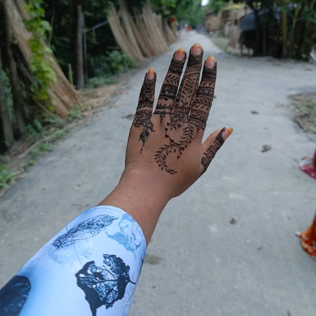 I have done all my work, then I washed my hands and face and finished sitting in my room, then I spent the whole day busy with work, actually there is no work after evening, so I put henna on my hands, I also shared that with you.