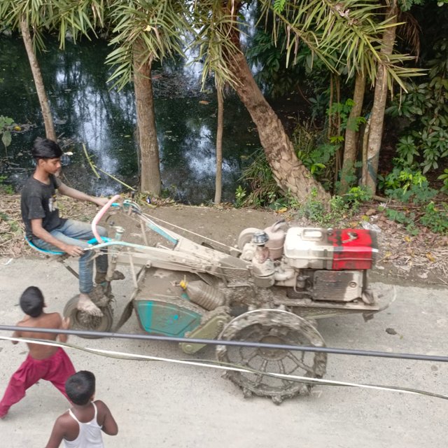 Then I sat on the roof for quite some time then I saw a younger brother coming from the field after cultivating the land, it is called a machine for cultivating the land, although it is small, this boy cultivates the land in the field with this machine.