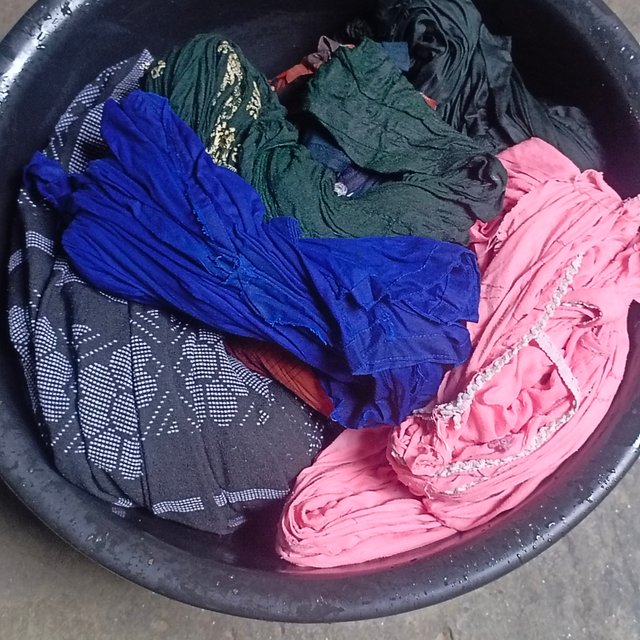 I got up early and washed my face. Actually, the house has gotten a little unclean because of the rain that has been falling for a while. I don't feel good seeing the mud all around. So I woke up and went outside and saw that the weather in the sky today is a little better. So I took out all my clothes in the morning and wet them for a while and then washed them.