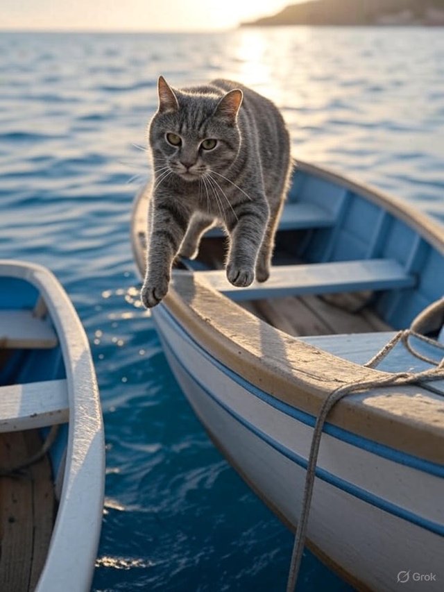 사르데냐 해역 위, 선원 고양이는 바다와 모험 속에서 당당히 항해를 즐겼다.