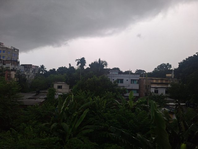 It has been raining since morning and I am not in a good mood to go out. I am also spending a good time in my room sleeping and online. I left the room and went up to the roof. The sky is quite dark and a cold wind is blowing. In a short time, the cold is biting me. I see a black cloudy sky and took out my mobile and tried to take a picture. I could not stay on the roof for long because it was cold so I came down. I made a cup of tea and came to my room and turned on my PC and listened to Arabic recitation on YouTube.