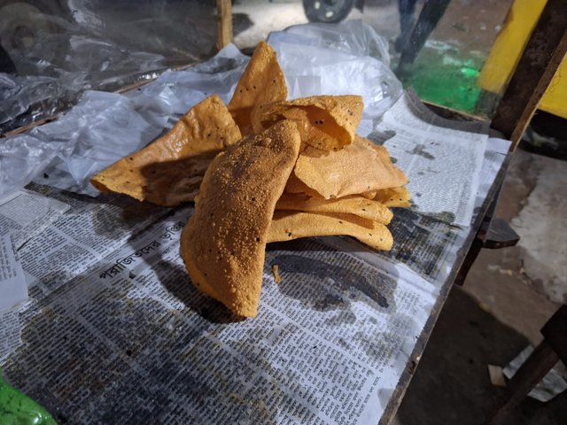 The rest of the day was spent cooking, eating and sleeping today. We went out in the evening for breakfast when the sky was a bit better. I wanted to eat local papad bhajans today. I walked a little and asked for papad to be fried. I usually avoid this food, I don't know why I wanted it today. I asked for a papad. Each papad costs 10 BDT.