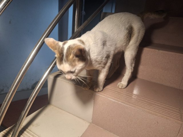 I came back home and a cat came to our house. It was someone's pet cat. It came closer when it saw a person. Whenever I went to take a picture, it came very close. I tried many times but I couldn't take a good picture. It wouldn't stay still.