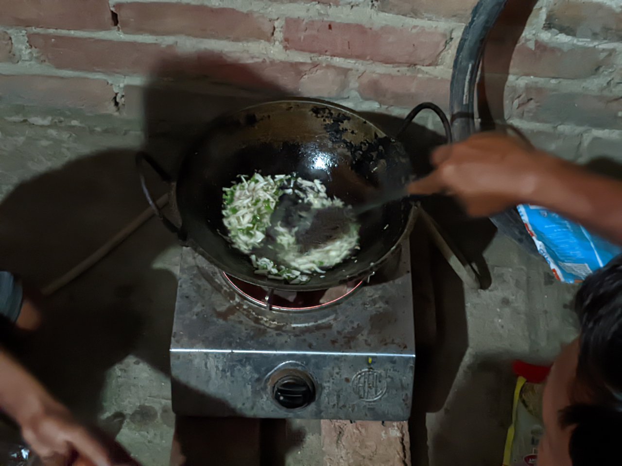 When the photos were taken, one of my friends said that since it was almost 9 pm, I was very hungry.And then my friend said, "Let's have a noodle party today." And we all agreed to withdraw money and buy noodles, eggs, etc. at the shop. Uncle's house had a gas stove, which was convenient for cooking.