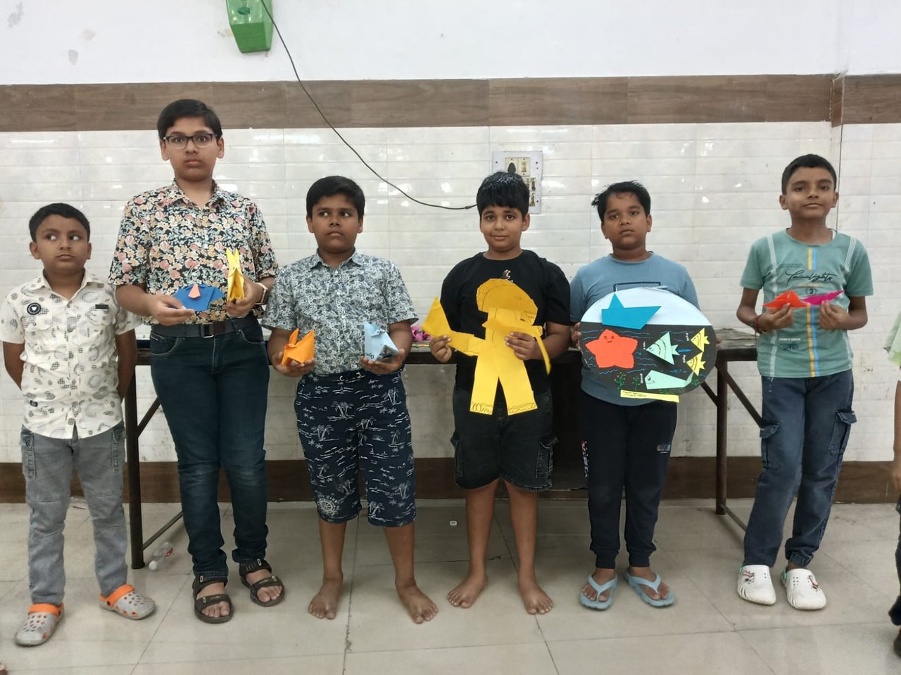 As the time was up, everyone's crafts were taken, but the results wouldn't be announced today. There would be other programs on the same day as Agrasen Jayanti, only then would all the results be announced together. Later, tea and snacks were served. Samosas, tea, and dhokla were included.