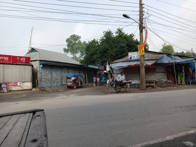 Anyway, I had to walk for about five minutes from home to the market. I came to the market and after a while I noticed that there were not many people in the market, so the market was very empty. Here you can see a few vans parked waiting to pick up passengers. Anyway, after a while I came to a shop to spend some time. I spent some time in that shop and even spent some time with my elder brother. Then after a while I came to the shop. After coming to the shop, I saw my elder brother sitting and spending time in the shop. Then I also started spending some time in the shop.