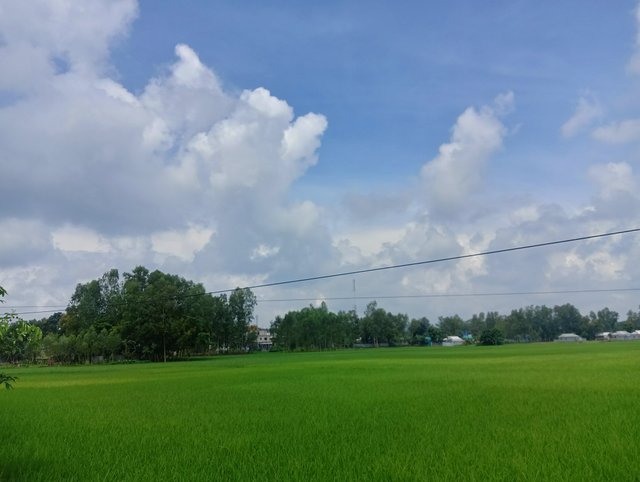Anyway, I stayed at my house till afternoon. I took a bath in the afternoon, cleaned myself up, ate food, spent some time on my Steemit ID and then rested. I always rest in the afternoon. Anyway, after finishing my rest, I went outside to review the time. I was walking along the road, on one side the view of the newly planted rice field was very beautiful. In the afternoon, even the nature scenes were very beautiful. So here I was busy reviewing for some time. Immediately, I captured a picture through my mobile phone and have already reviewed it with you. Where the sky was cloudy, the fields were full of green trees. Anyway, after a while, I left this place and went to our shop.